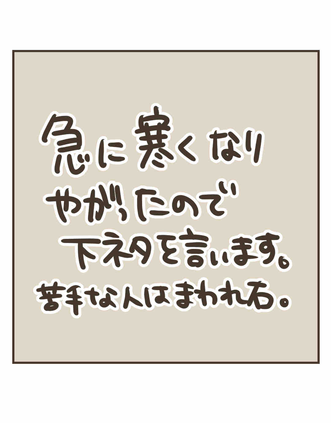 急に寒くなりやがったので下ネタを言います。 皆様こんにちは!なおたろーです!いつもありがとうございます!今回は今この世で1番なんの得にもならない漫画です。寒いよ〜〜〜。ただでさえ秋は自律神経を乱されて、9〜10月は本当にきついです。薬や漢方薬を飲んだりしていますが、うっかり飲み忘れちゃった時にはもう使 ... 2025/10/29 続きを読む