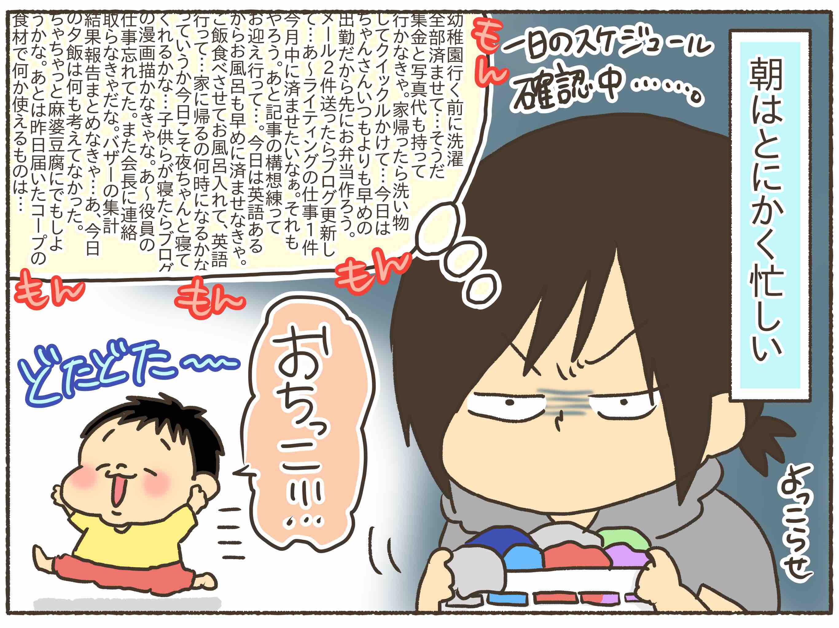 朝からやらかして登園途中に焦りまくった話。 皆様こんにちは、なおたろーです! いつもありがとうございます! さて今回は私のやらかした話です。 馬鹿じゃん。 バタバタするからって、忘れ物をしてもいい理由にはなりません…。 こさぶろー、どうやら一人でズボンをはいていたようです。 私もこさぶろ ... 2019/06/28 続きを読む