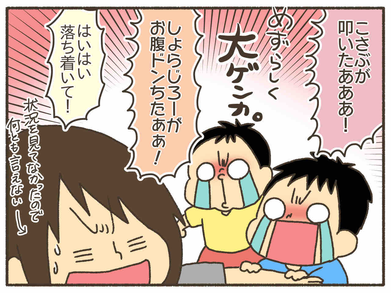 3歳児のお医者さんごっこに戸惑う 皆様こんにちは!なおたろーです!いつもありがとうございます!今回は3歳年少、次男のこさぶろーのお話です。お腹が痛いって言ったのに。何も聞いちゃくれねぇな。 ただただピュアな3歳児のなんです。2020春夏すくパラトリプル総選挙エントリーしています!コチラから投票 ... 2020/06/24 続きを読む