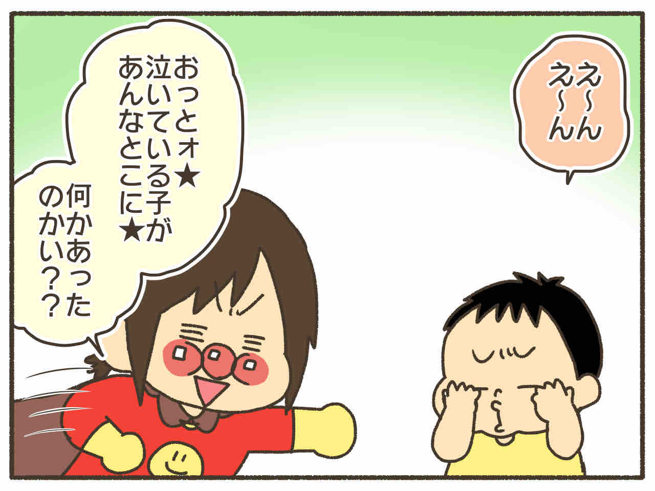 3歳息子のアンパンマンごっこが概念ぶち壊していた 皆様こんにちは!なおたろーです!いつもありがとうございます!今回は3歳年少、次男のこさぶろーのお話です。アンパンマンがオムライス作ってくれた。お顔が食べたかったんだけどな…。 アンパンマンじゃなくてもよくない?思ってたんと違う。 こさぶの言動はいつでも予想 ... 2020/09/28 続きを読む