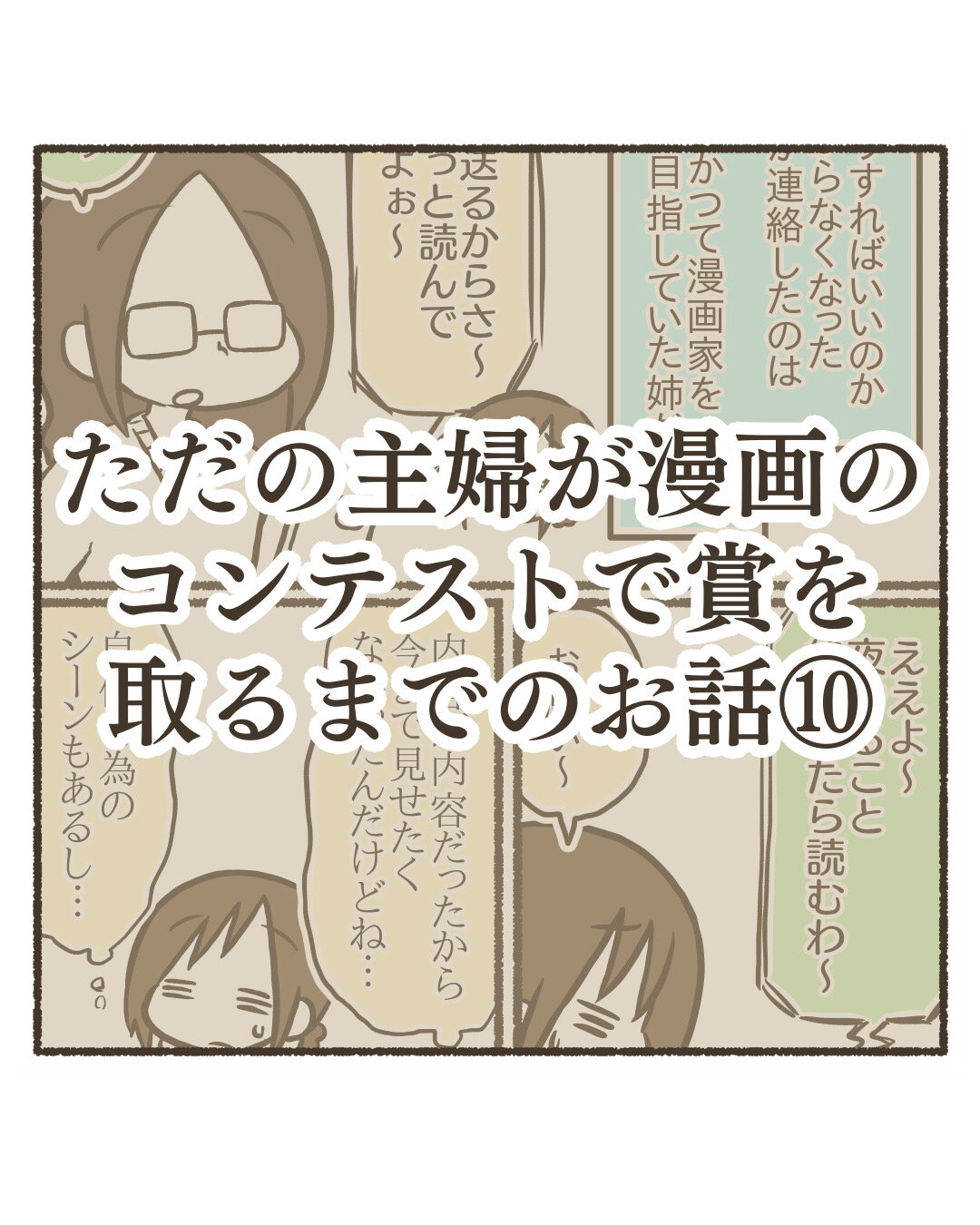 ただの主婦が漫画のコンテストで賞を取るまでのお話⑨ 皆様こんにちは!なおたろーです! いつもありがとうございます! 前回のお話はこちら。 第一話はこちら。 お姉ちゃーん!泣 どうしようもなくなった私は姉に連絡を取りました。。。 姉は私のブログも知っているし、コンテストに挑戦していることは知っていまし ... 2023/12/08 続きを読む